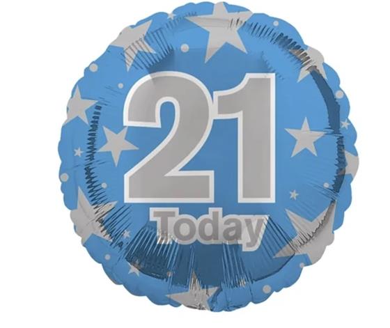 21 Today Blue & Silver Stars Balloon