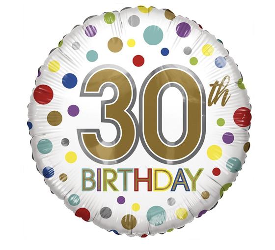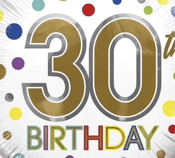18 Inch 30th Birthday Foil Balloon. Why not make it into a bouquet of 3 balloons and create a gorgeous gift.