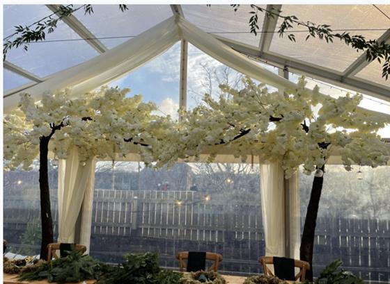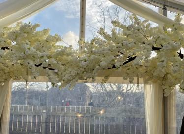Beautiful Ivory Cherry Blossom Trees Make a beautiful addition to the end of the aisle. They are perfect for behind a top table.