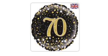 18 inch 70th Birthday Black & Gold Fizz Foil Balloon