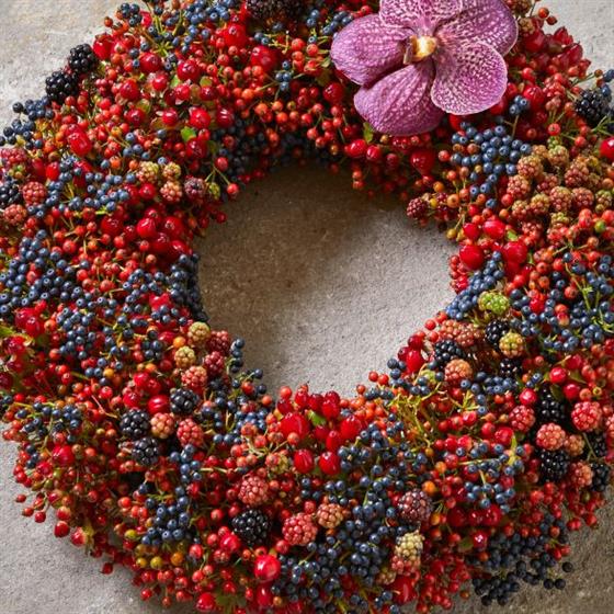 A last gift of nature's riches with an abundance of seasonal berries crafted into a classic wreath - the symbol of eternal life. A fitting tribute for a colleagu, friend or countryside enthusiast.