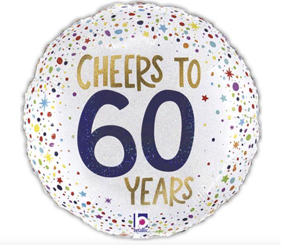 Superb for 60th birthday celebrations, this 18 inch Cheers To 60 Years Glittergraphic Foil Balloon is a great way of adding rainbow flair to birthday parties!