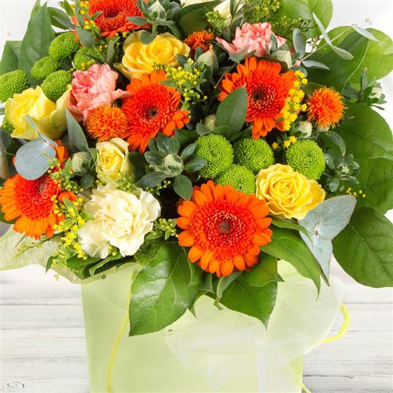 Please note that each bouquet and arrangement are made bespoke by our talented florists and the featured pictures are only a guide to the flowers, colours and style used by our florists.  Each flower is individual.   Due to the seasonal availability of flowers it may be necessary to vary individual stems from those shown. Our skilled florists may substitute flowers for one similar in style, quality and value. Where our designs include a sundry item like a vase or basket it may not always be possible to include the exact item as displayed. If such an occasion arises we will make every effort to replace the item with a suitable alternative.