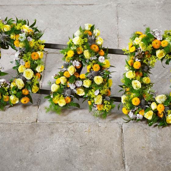 The warm colours of sunshine inspire a garden full of memories for a treasured Dad. This tribute can be made in various colours to denote a particular football team or favourite colour scheme.
