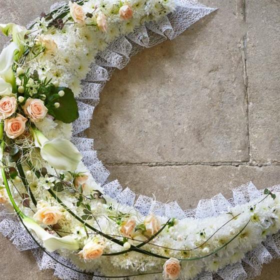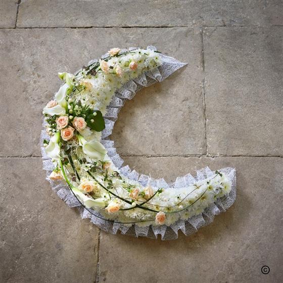 Shining though the night, a crescent moon is a beacon of hope guiding though the darkness of sorrow. With it's soft edging and pretty charm, the gentle glow of this tribute offers solace for a child taken to soon