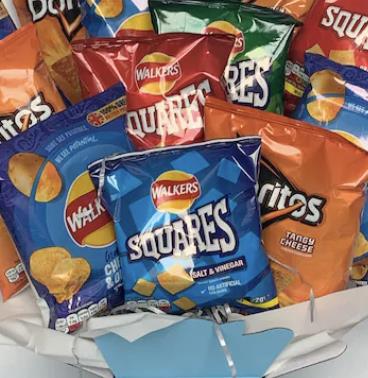 A beautiful bouquet containing crisps. If there are any crips you would like added or excluded just let us know.