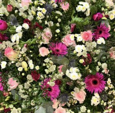 The picture shown is of a 16" Pose. Each one is made bespoke so please let us know if you would like a different colour or if you would like a favourite flower added. The florists will always try and match your requirements.