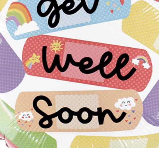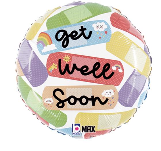 18 Inch Get Well Soon rainbow Plaster Foil Balloon. Why not make it into a bouquet of 3 balloons and create a gorgeous gift.