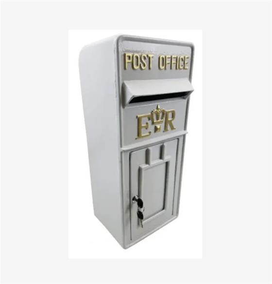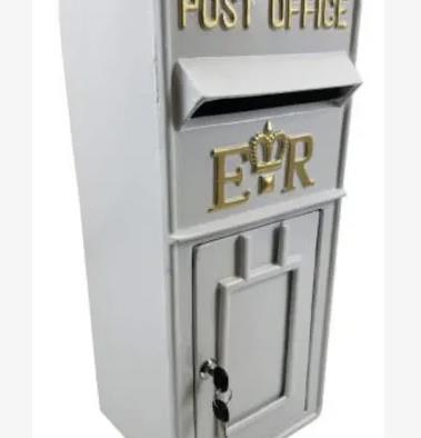 Beautiful white gift envelope post box. With a personalised card placed on the front. Comes with lockable key.