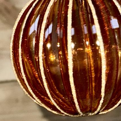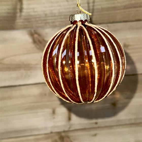 Glass Stripe Ball Bauble -Tree Decoration - Amber  1