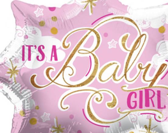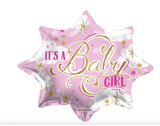 An 18 inch light pink starburst shape foil with 'It's A Baby Girl' message is great for a baby shower or gender reveal party. Or makes a lovely gift for a new born.