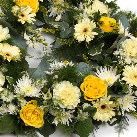 Lemon & White Funeral Wreath