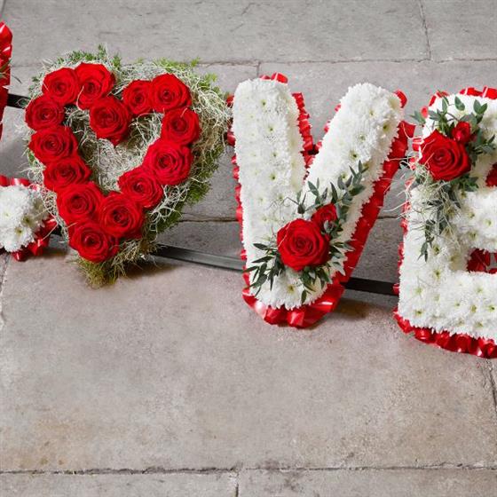 This bespoke and poignant love letter to a cherished companion is created with a traditional chrysanthemum base and finished with red roses - the symbolic flower of love. It is a moving expression of devotion.