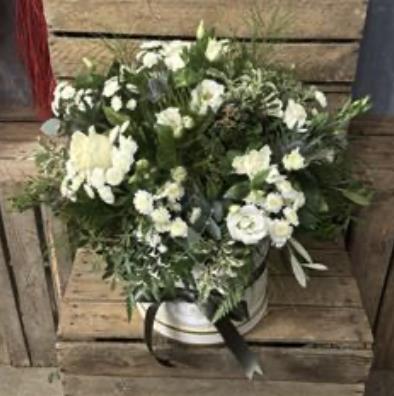 This beautiful luxury hat box is created using luxury seasonal flowers.
