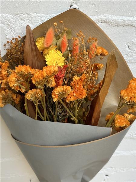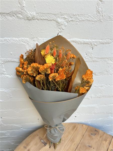 Refined and elegant orange dried flower bouquet, perfect for a unique and everlasting bouquet!