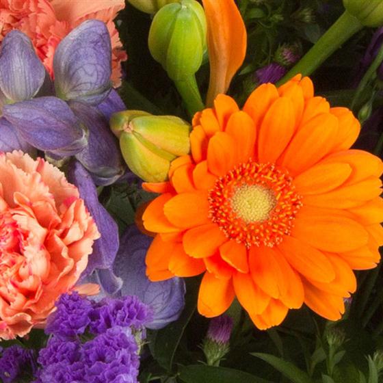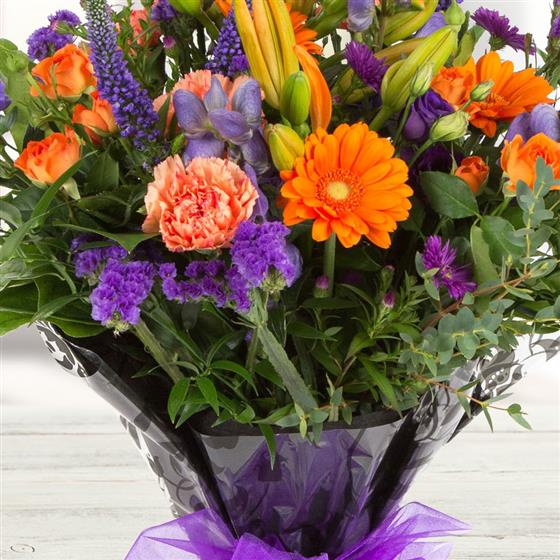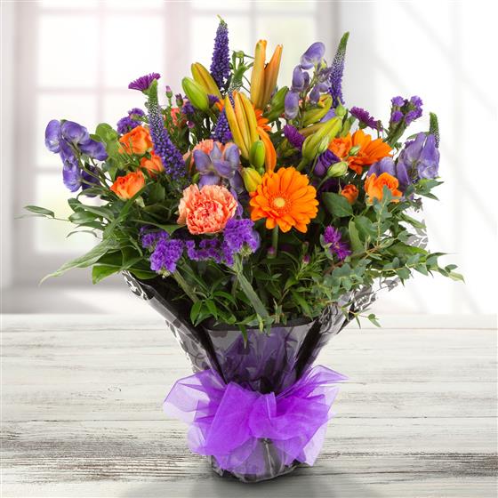 Please note that each bouquet and arrangement are made bespoke by our talented florists and the featured pictures are only a guide to the flowers, colours and style used by our florists.  Each flower is individual.   Due to the seasonal availability of flowers it may be necessary to vary individual stems from those shown. Our skilled florists may substitute flowers for one similar in style, quality and value. Where our designs include a sundry item like a vase or basket it may not always be possible to include the exact item as displayed. If such an occasion arises we will make every effort to replace the item with a suitable alternative.