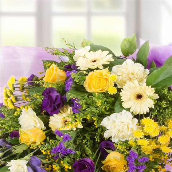 Please note that each bouquet and arrangement are made bespoke by our talented florists and the featured pictures are only a guide to the flowers, colours and style used by our florists.  Each flower is individual.   Due to the seasonal availability of flowers it may be necessary to vary individual stems from those shown. Our skilled florists may substitute flowers for one similar in style, quality and value. Where our designs include a sundry item like a vase or basket it may not always be possible to include the exact item as displayed. If such an occasion arises we will make every effort to replace the item with a suitable alternative.