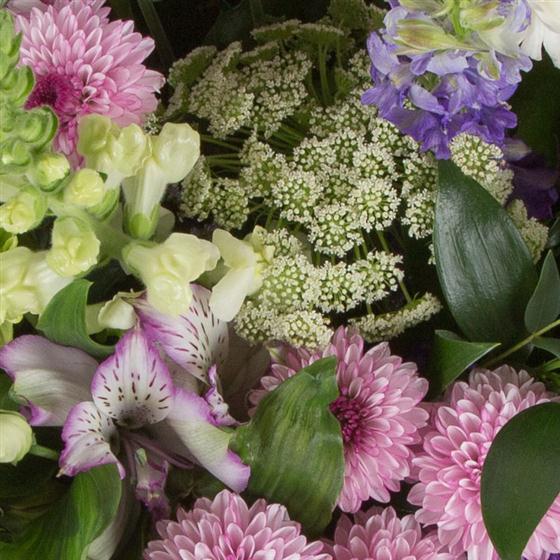 Please note that each bouquet and arrangement are made bespoke by our talented florists and the featured pictures are only a guide to the flowers, colours and style used by our florists.  Each flower is individual.   Due to the seasonal availability of flowers it may be necessary to vary individual stems from those shown. Our skilled florists may substitute flowers for one similar in style, quality and value. Where our designs include a sundry item like a vase or basket it may not always be possible to include the exact item as displayed. If such an occasion arises we will make every effort to replace the item with a suitable alternative.