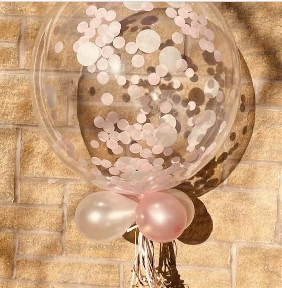 Created for lovers of pink. Our 24” bubble filled with small pink and large white confetti.