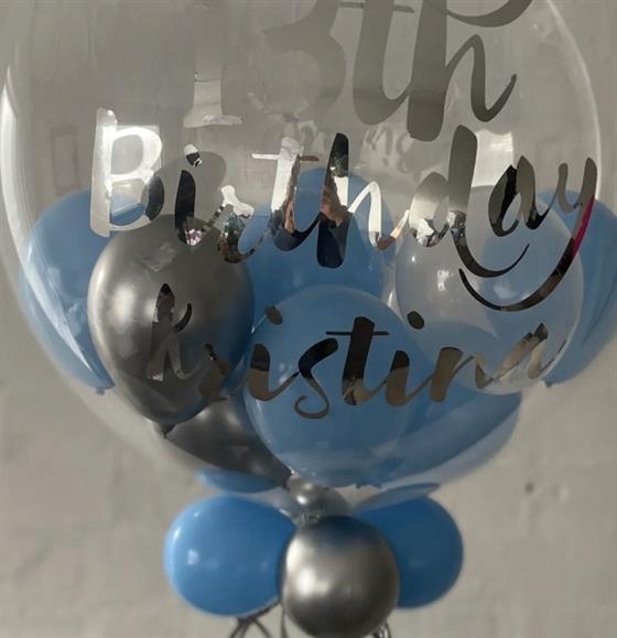 We have created our own Blue Topaz Bubble by combining light blue, silver and clear balloons.