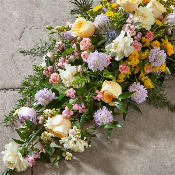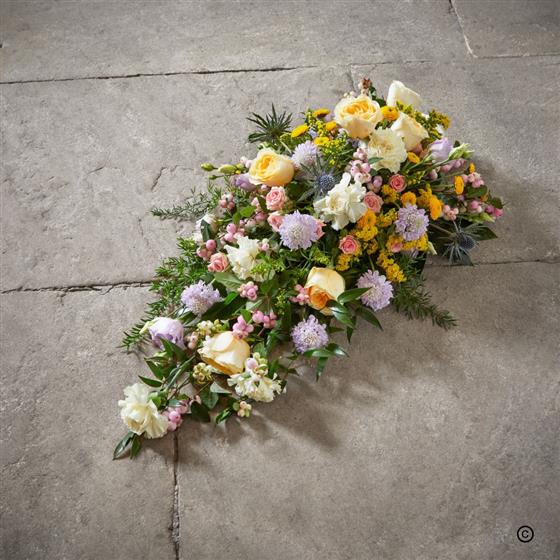 A popular and traditional sympathy spray made in a mixed selection of colours and flowers. The spray can be made in various colourwas. Te ideal tribute from acquaintances, colleagues, friends or family.