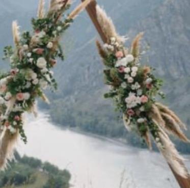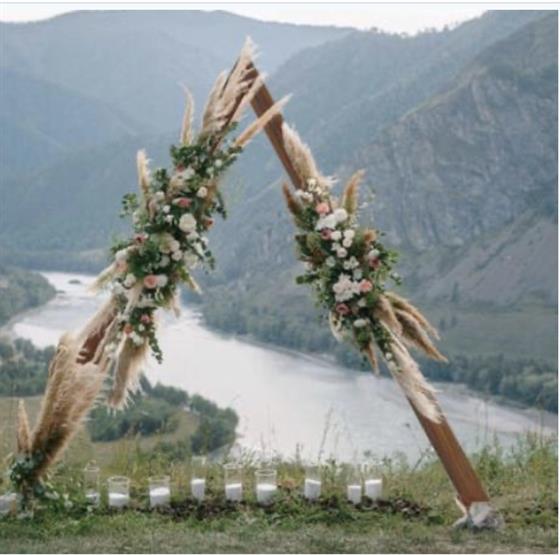 This Beautiful V Arch with dried campus and faux flowers is available for hire..
