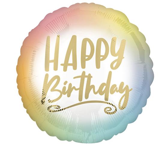 18 Inch Happy Birthday Pastel Ombre and Gold Foil Balloon. Why not make it into a bouquet of 3 balloons and create a gorgeous gift.